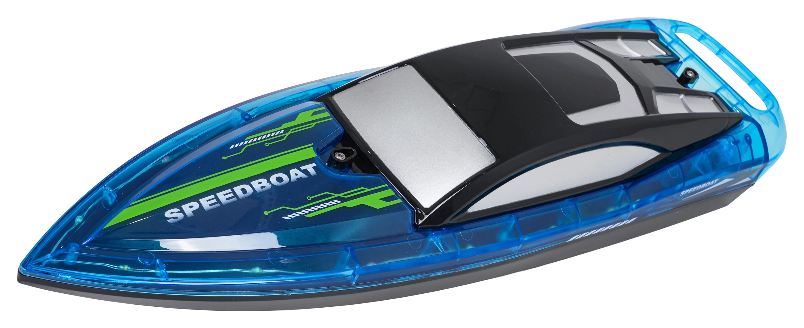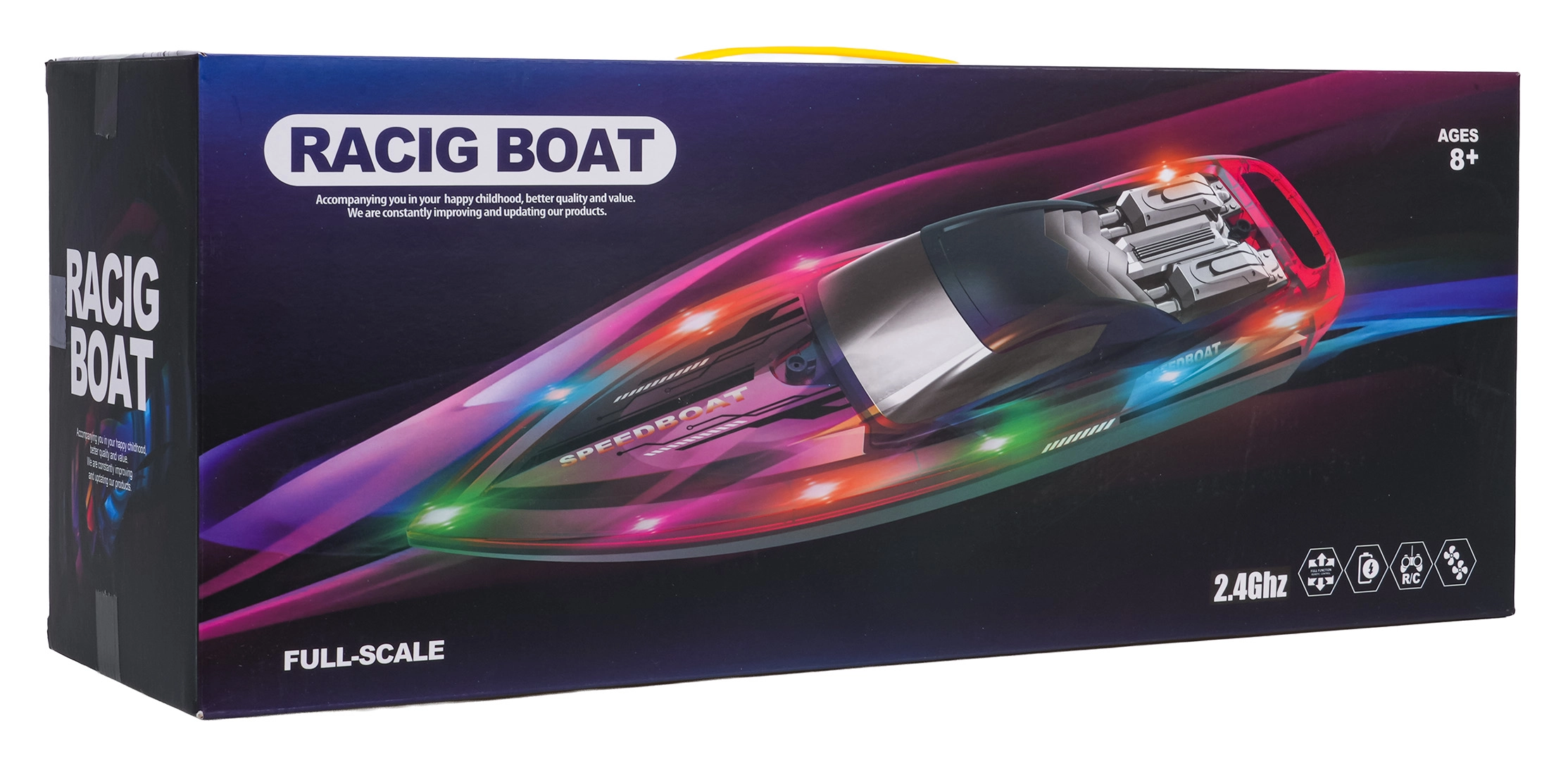 Vivi l’adrenalina sull’acqua con questa veloce barca da corsa RC per bambini dagli 8 anni in su. Grazie al controllo a 2,4 GHz, alle luci LED e al sensore di sicurezza che attiva la barca solo in acqua, la guida è divertente e sicura. La struttura resistente e il profilo slanciato e aerodinamico garantiscono stabilità e alta velocità. Nella confezione troverai anche batteria ricaricabile, cavo USB, eliche di ricambio e un pratico supporto.