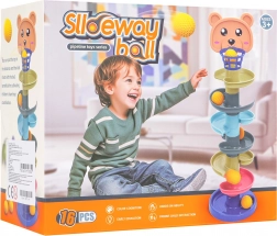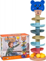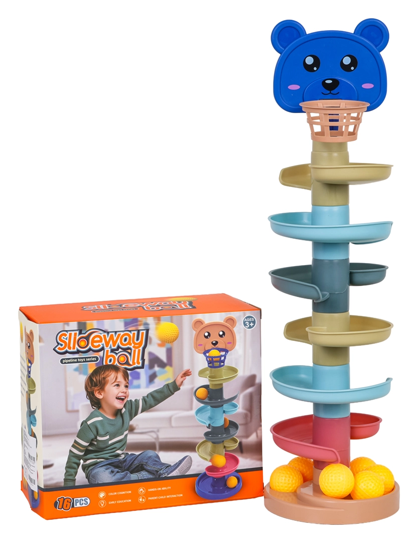 Questa pista a biglie colorata con testina d’orsetto e canestrino superiore entusiasmerà piccoli costruttori e manine curiose. I pezzi si incastrano facilmente: costruisci una torre fino a 6 piani e guarda le palline sfrecciare lungo le spirali fino alla base. Più alta è la torre, maggiore è la sfida di centrare il canestrino – un gioco ideale per sviluppare pazienza e concentrazione.