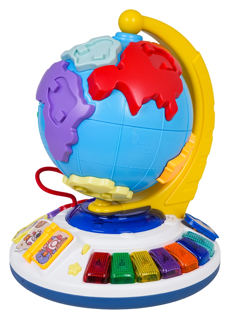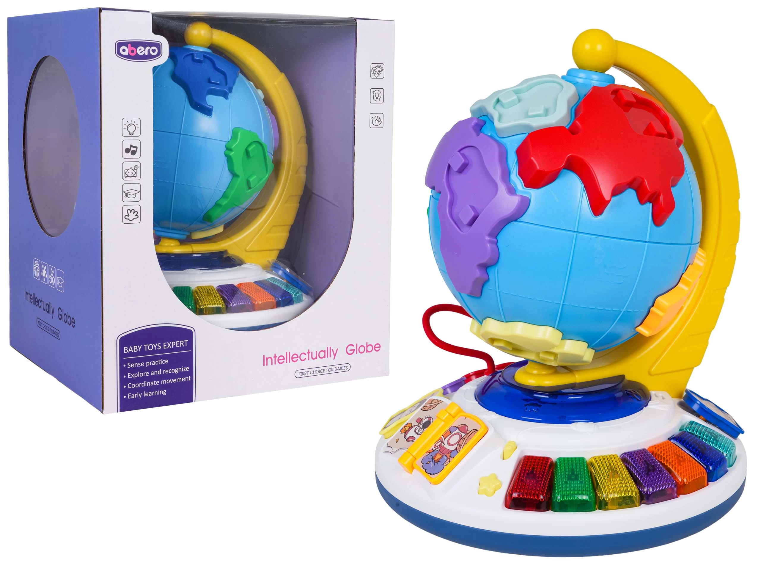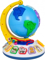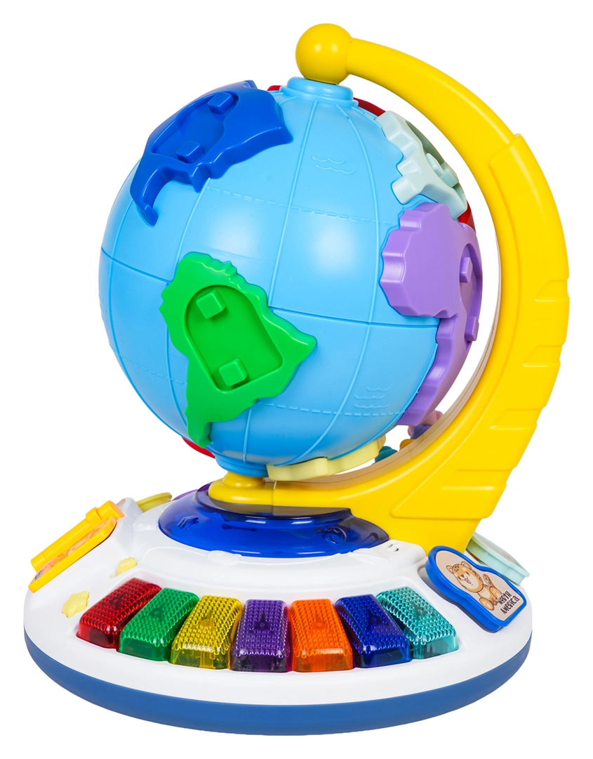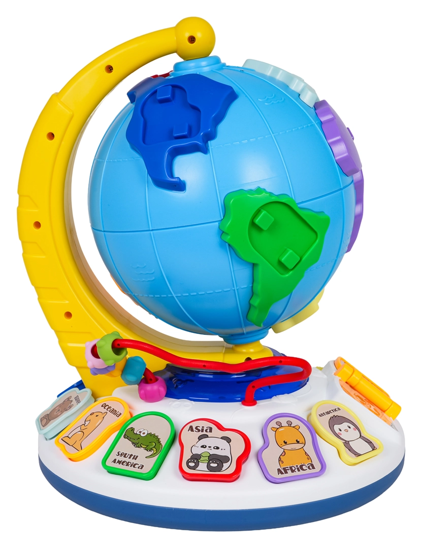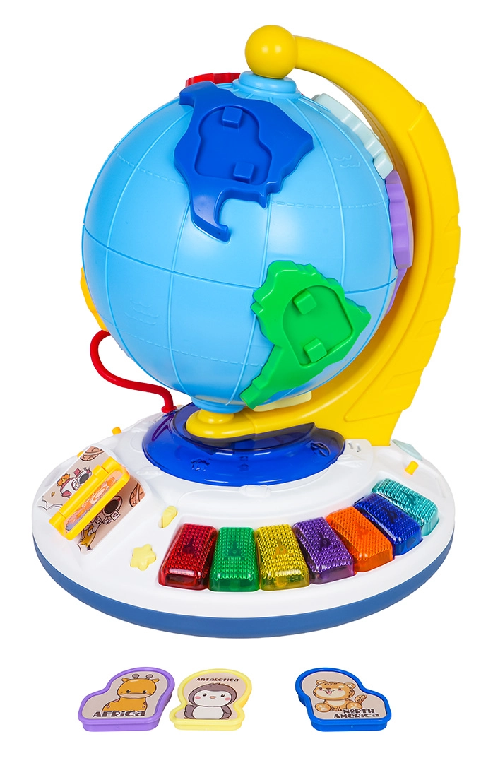 Scopri il mondo in modo giocoso con il globo interattivo per bambini dai 18 mesi. Un colorato giocattolo educativo con effetti sonori e luminosi, rotazione a 360° e continenti in rilievo che sviluppa la motricità fine, l’immaginazione e le prime conoscenze di geografia. Inserendo la spilla dell’animale si sente il nome del continente, dell’animale e il suo verso. Include tasti del piano luminosi, un libricino a linguetta con melodie e un labirinto di perline.