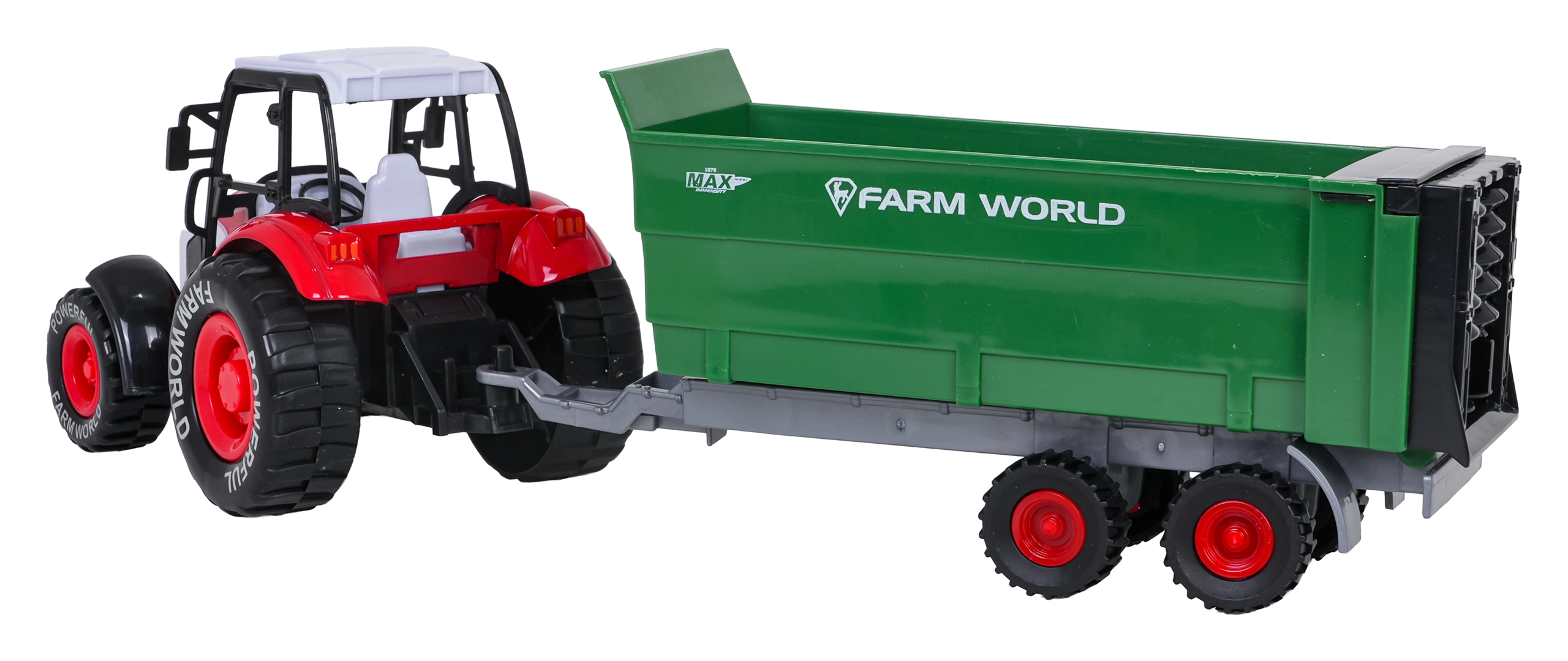 Il rimorchio può essere facilmente staccato e usato separatamente. Le sponde alte e il portellone posteriore favoriscono il carico e scarico di piccoli oggetti, così i bambini possono simulare realisticamente i lavori agricoli. Le ruote con battistrada pronunciato assicurano un movimento fluido su diverse superfici.