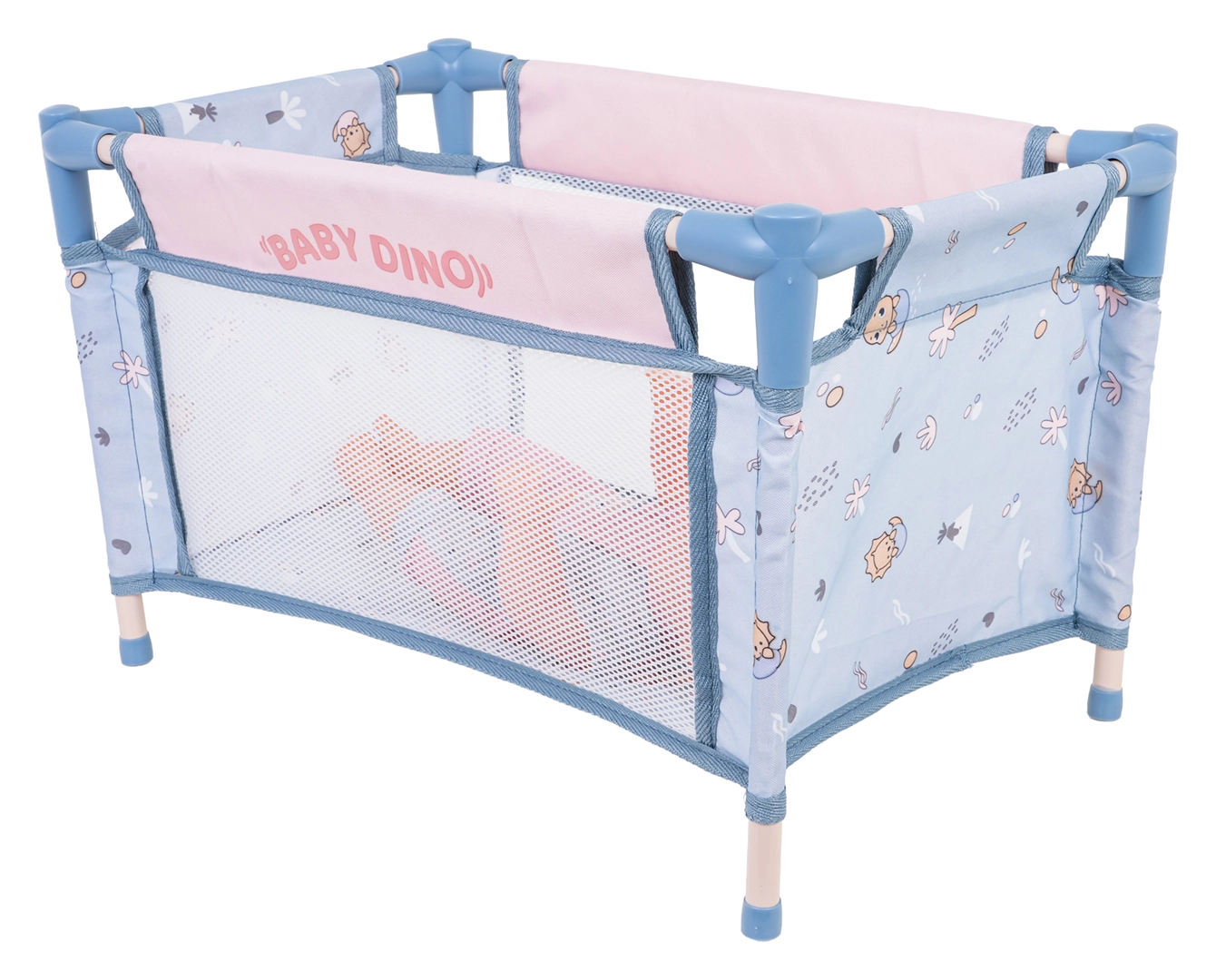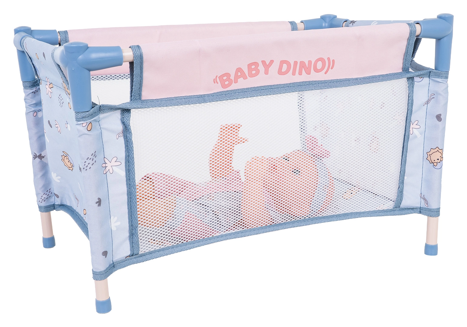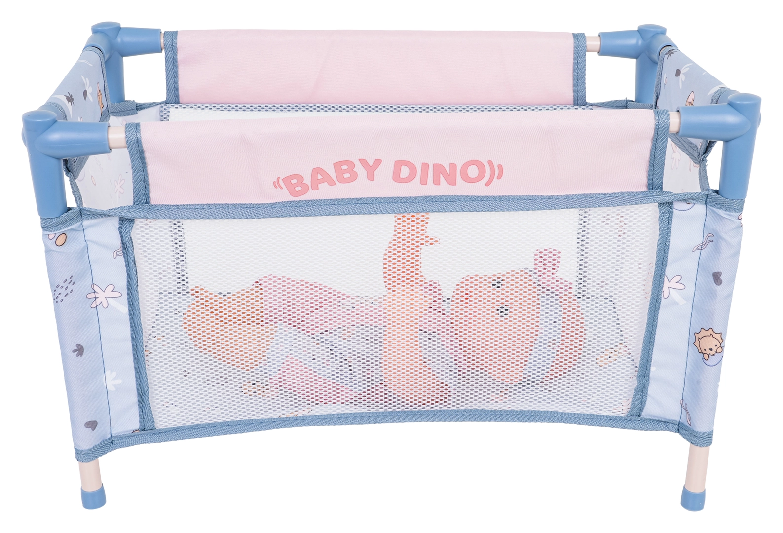 Pratico box/lettino con struttura solida e rete per migliore visibilità e aerazione. In coordinato con il motivo BABY DINO.