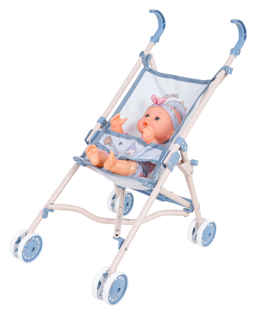 Questo mega set BABY DINO offre ai bambini tante opportunità per un gioco creativo e realistico di cura. La bambola ha braccia e gambe mobili, indossa pagliaccetti colorati con fascia e può bere dal biberon e “fare la pipì” nel vasino. Grazie al passeggino leggero, al lettino da viaggio e al seggiolone, i bambini possono dare da mangiare alla bambola, portarla a spasso e farla addormentare.