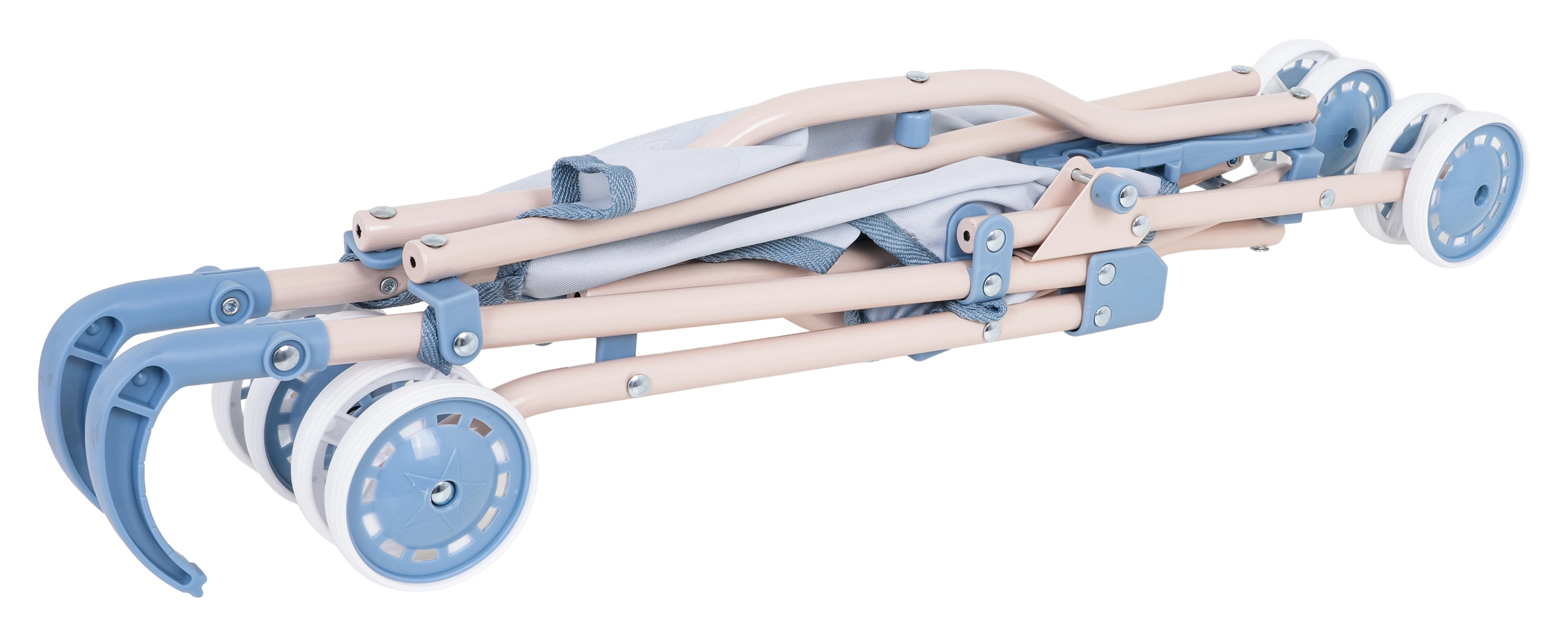 Passeggino leggero con doppie ruote e cintura di sicurezza, si piega facilmente per risparmiare spazio. Perfetto per giocare in casa e in viaggio.