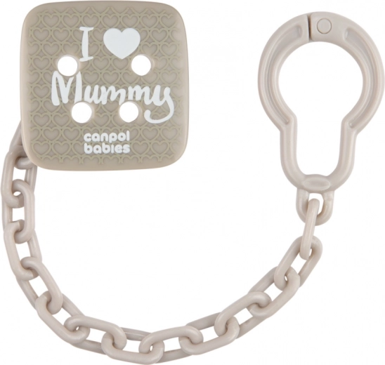 Tieni il succhietto sempre a portata di mano e pulito. La catenella per succhietto Canpol babies I LOVE MUMMY offre un fissaggio affidabile grazie al clip robusto, facile da azionare con una sola mano. Il design minimalista grigio si abbina a qualsiasi outfit e, grazie alle forme arrotondate, è delicato e sicuro.