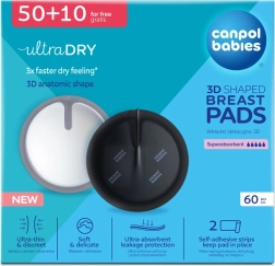 Canpol babies Ultra Dry 3D sono coppette monouso sagomate per reggiseno, pensate per le mamme in gravidanza avanzata e durante l’allattamento. Sette strati protettivi e il nucleo ultraassorbente bloccano rapidamente l’umidità, mentre i materiali traspiranti mantengono la pelle confortevole senza irritazioni. Il design sottile (solo 1,3 mm) garantisce la massima discrezione anche sotto la biancheria aderente.