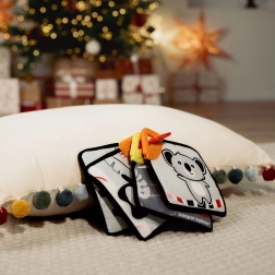 Scoprite il gioco ideale per i primi mesi 0m+. Set di 4 carte in tessuto bifacciali (12 × 12 cm) ad alto contrasto che aiutano il bambino a concentrare lo sguardo e sviluppano la coordinazione occhio–mano. Ogni carta è morbida e frusciante e piacevole al tatto, perfetta anche per i più piccoli.