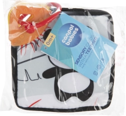 Il set include un massaggiagengive flessibile sull’angolo di ogni carta per massaggiare le gengive e dare sollievo durante la dentizione. L’anello in plastica consente un facile fissaggio a lettino, passeggino, altalena o seggiolino auto: ideale a casa e in viaggio.