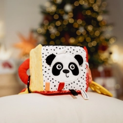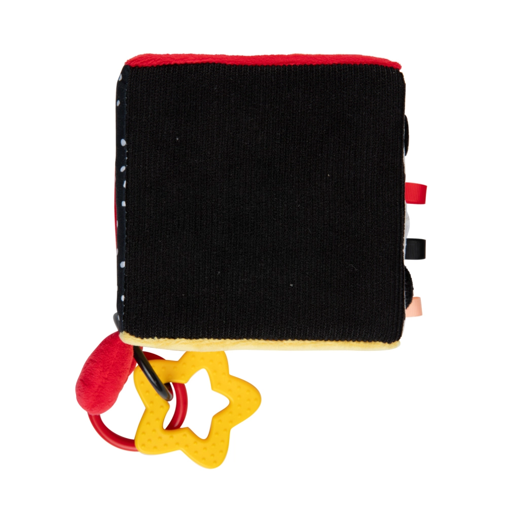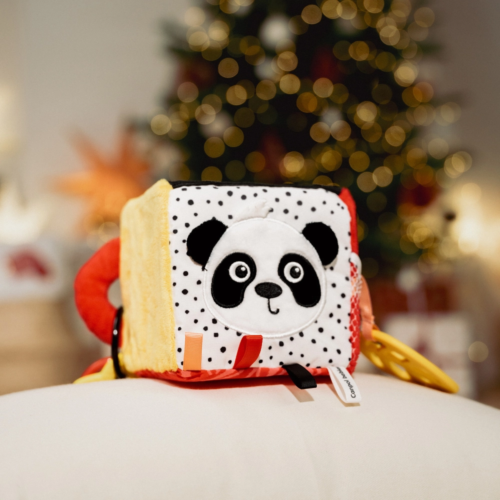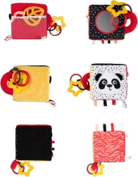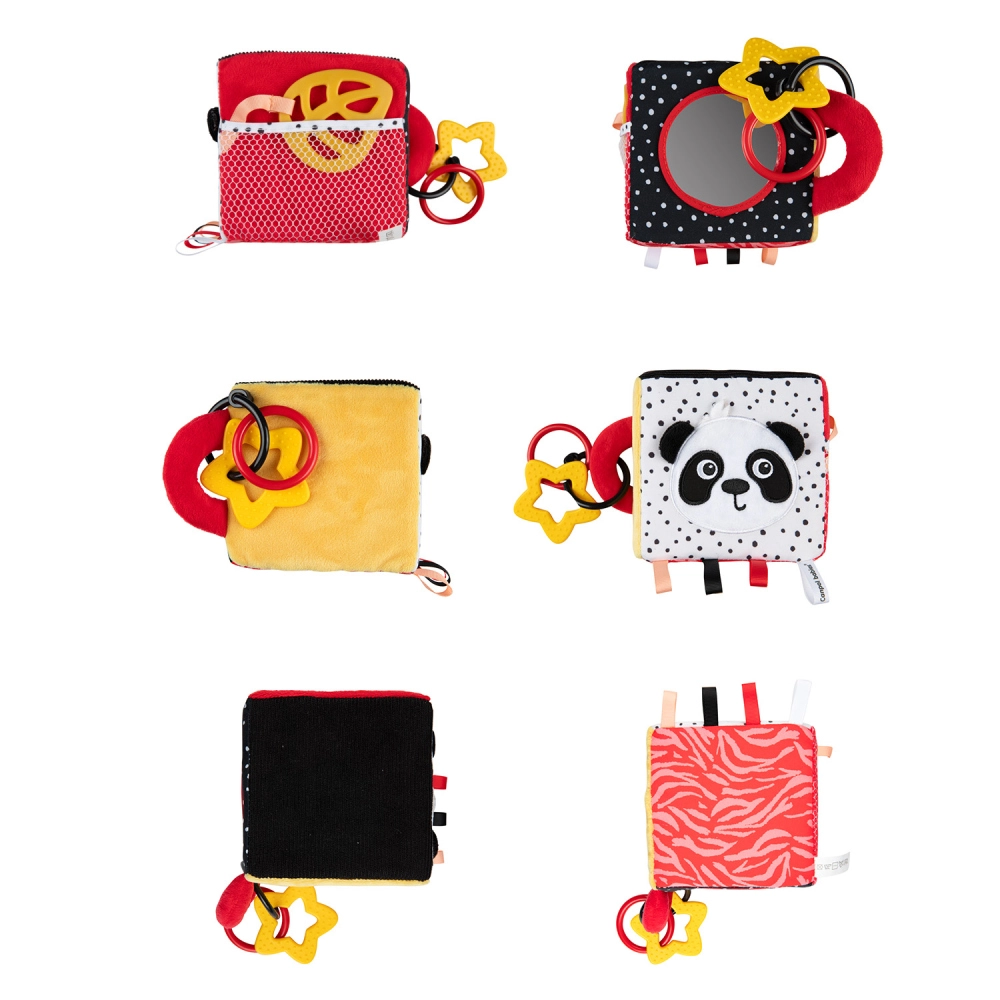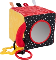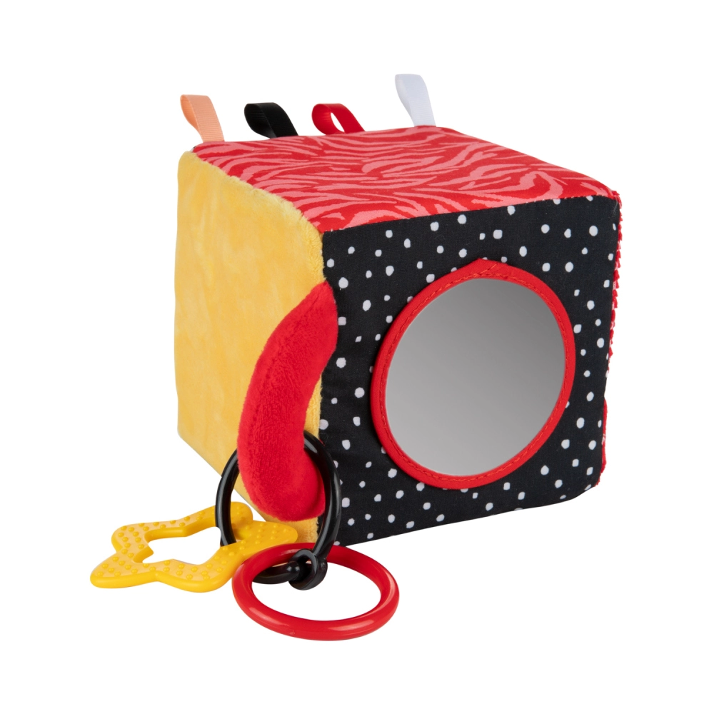 Il cubo sensoriale BabiesBoo è leggero, morbido e ideale per le piccole manine. I motivi a contrasto in bianco e nero e i colori vivaci stimolano la vista; i materiali fruscianti e il sonaglio dal suono delicato sviluppano l’udito; le texture varie con laccetti incoraggiano l’esplorazione tattile. Lo specchietto sicuro favorisce la consapevolezza di sé e la coordinazione occhio–mano.