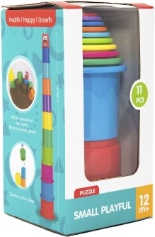 Il set di bicchieri impilabili colorati comprende 11 pezzi che possono essere utilizzati per creare una torre alta. I bicchieri di diversi colori possono essere incastrati l'uno nell'altro, un ottimo modo per sviluppare le abilità motorie fini del tuo bambino.