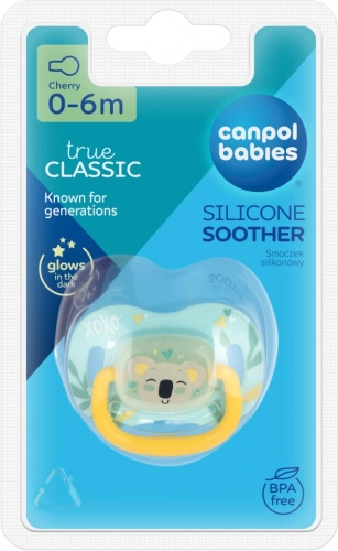 Il succhietto in silicone a ciliegia CANPOL BABIES Exotic Animals koala 0–6 mesi calma e soddisfa la suzione del tuo bambino. La tettarella rotonda in silicone 100% ipoallergenico, resistente, è senza sapore e odore, quindi è facilmente accettata. La placca sagomata con fori di ventilazione minimizza le irritazioni e consente una respirazione libera.