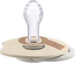 Tettarella in silicone a spessori differenziati che si espande e si contrae naturalmente durante la suzione, supporta l’allattamento e non compromette lo sviluppo del linguaggio e dell’occlusione*.