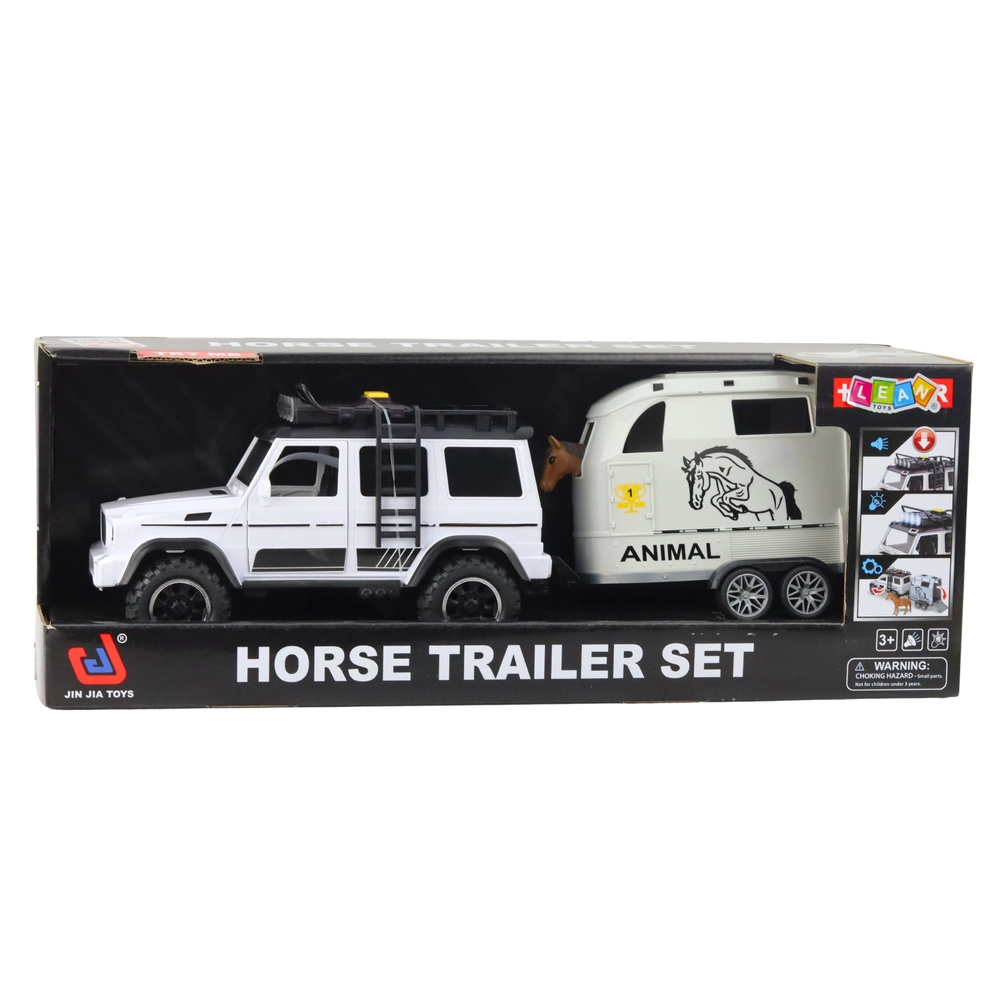 Set divertente per i piccoli amanti degli animali e delle auto: fuoristrada con rimorchio staccabile e figurina di cavallo. Offre effetti luminosi e sonori, porte apribili e una lavorazione di qualità in plastica resistente per lunghe ore di gioco creativo.