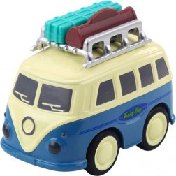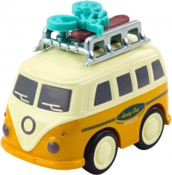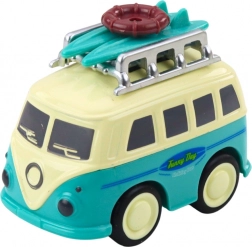 Scopri il divertimento su quattro ruote con il simpatico camper ispirato ai classici furgoncini turistici. Grazie alla trazione a frizione il veicolo parte vivacemente dopo una leggera spinta e il bagaglio mobile sul tetto dona dinamica alla corsa. Le dimensioni compatte entrano nello zainetto, così il bambino può vivere avventure di viaggio ovunque.