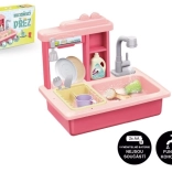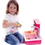 Divertiti a lavare i piatti con questo lavello per bambini di colore rosa, che include un rubinetto funzionante, un serbatoio d'acqua e un scolapiatti rimovibile.