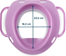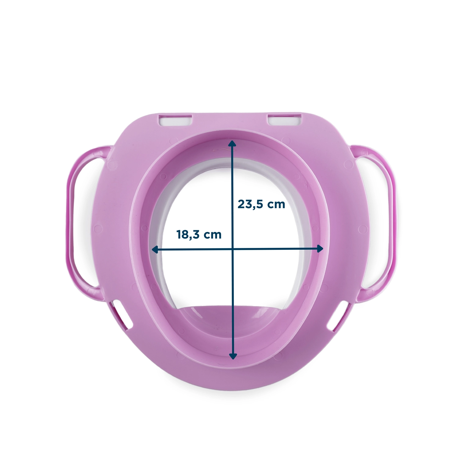 Questo adattatore per WC è progettato per bambini da circa 12 mesi e li aiuta a gestire con sicurezza il passaggio dal vasino al WC tradizionale. L’imbottitura morbida offre comfort anche durante sedute più lunghe, mentre le maniglie laterali garantiscono stabilità e una sensazione di sicurezza.