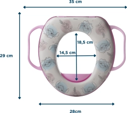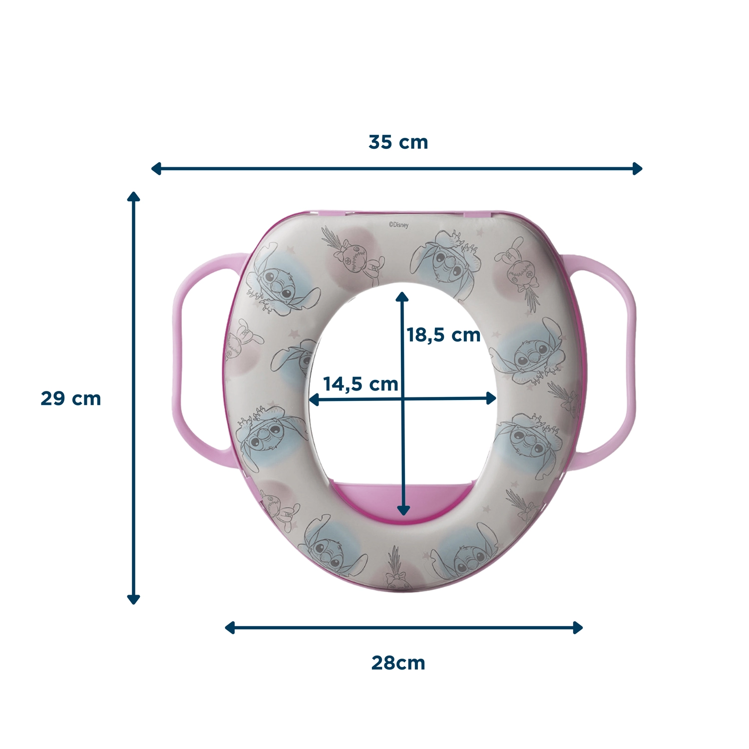 Offri ai bambini un passaggio comodo e sicuro al WC per adulti con la morbida riduzione per WC con maniglie LILO & STITCH. Seduta imbottita, maniglie integrate per maggiore sicurezza e bordo antispruzzo rialzato garantiscono comfort e igiene. Installazione facile sulla maggior parte dei WC standard e design giocoso che motiva i bambini all’autonomia.