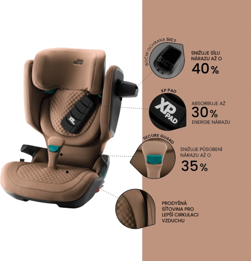 Il seggiolino auto premium BRITAX RÖMER Kidfix Pro Lux nella tonalità Warm Caramel garantisce la massima sicurezza e comfort al tuo bambino da 100 a 150 cm. Offre XP-PAD per la protezione di collo e torace, SecureGuard per il corretto posizionamento della cintura a tre punti, avanzata protezione laterale SICT, poggiatesta ergonomico a forma di V e design stretto (44 cm) per 3 seggiolini affiancati. I rivestimenti in tessuti sostenibili e di lusso e la ventilazione dello schienale aumentano il comfort anche nei viaggi lunghi.