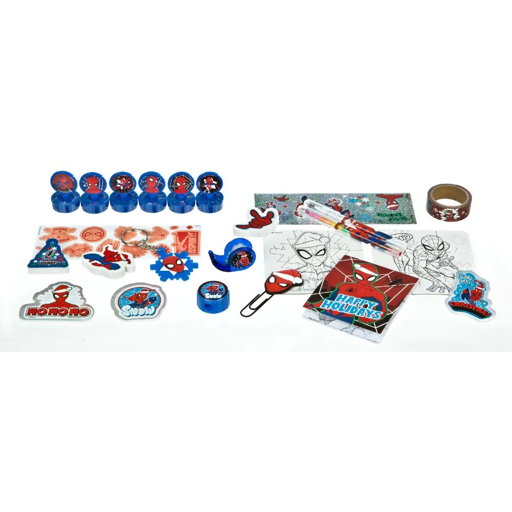 All’interno i bambini troveranno articoli come mini timbri, puzzle, portachiavi, nastro con dispenser, adesivi laser, mini matita, mini pastello, adesivi shaker, graffette, blocco per appunti, gomme sagomate e washi tape. Ogni finestrella è una piccola avventura e farà felici tutti gli amanti di SPIDER-MAN.