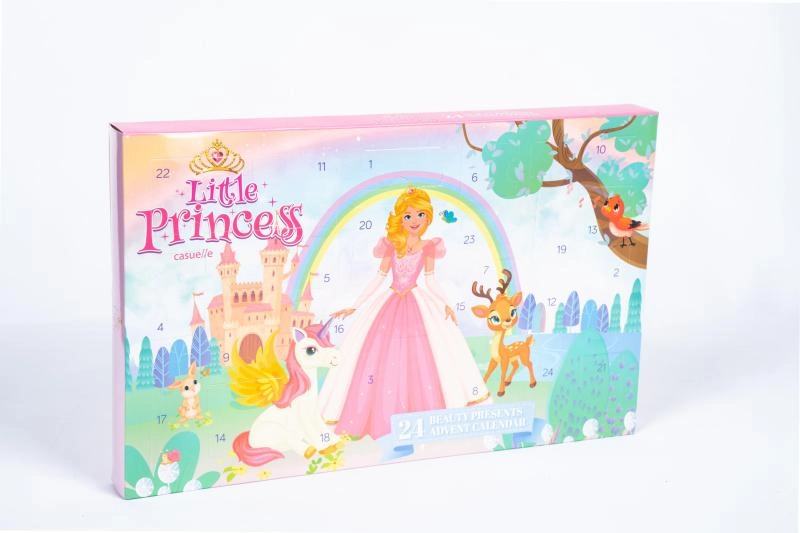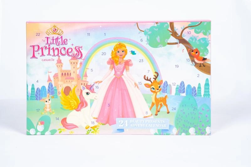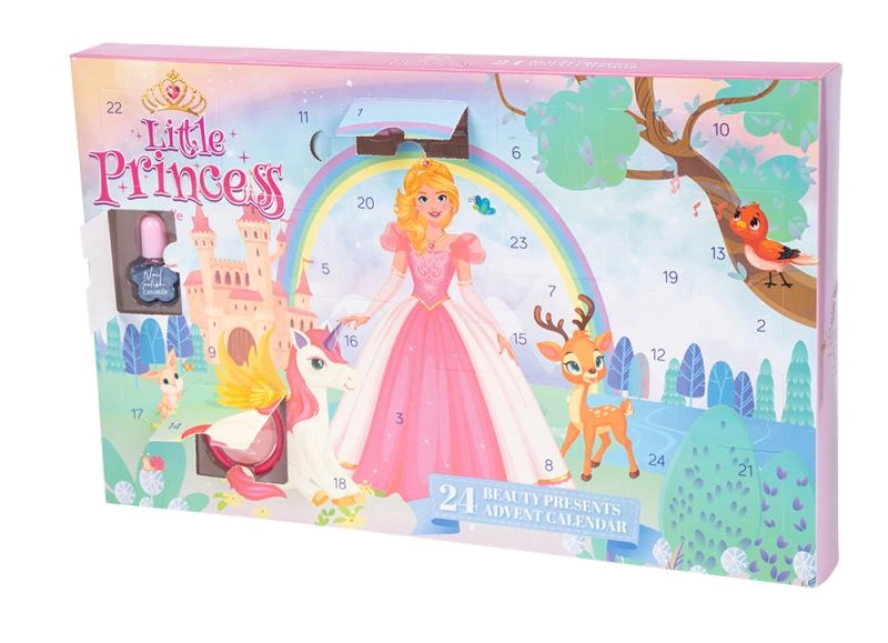 Questo calendario dell’Avvento cosmetico Little Princess porta ogni giorno ai bambini una divertente sorpresa sotto forma di trucchi e accessori per manicure. Ciascuna delle 24 finestrelle nasconde un piccolo momento di gioia – dai rossetti e lucidalabbra a ombretti, blush, fino a smalti, glitter, adesivi e pratici utensili.