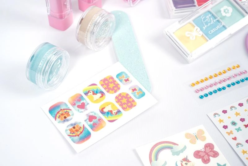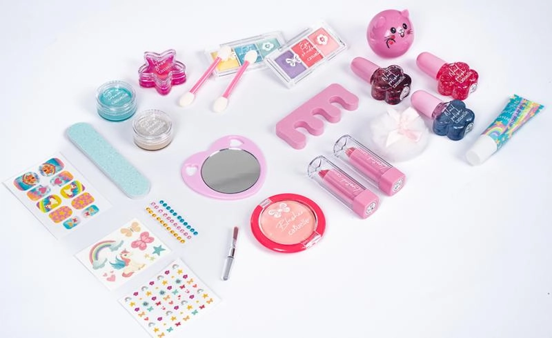 Il set stimola la fantasia e la motricità fine. I bambini possono provare in sicurezza il trucco di base e la manicure in una versione colorata e amichevole.
