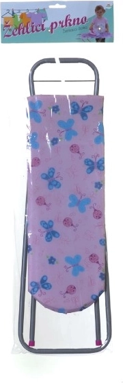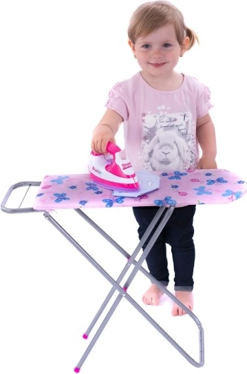 Grazioso asse da stiro per bambini con solida struttura in metallo e piano in legno, ideale per il gioco della casa. Offre una superficie stabile, una struttura pieghevole per un facile riponimento e un rivestimento colorato con motivi che divertono i bambini. Ottimo per lo sviluppo della fantasia e della motricità fine. Solo asse da stiro, senza ferro.