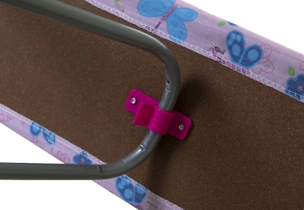 L’asse da stiro per bambini è pensato per i piccoli aiutanti che vogliono imitare gli adulti nelle faccende domestiche. La struttura in metallo con meccanismo pieghevole e il resistente piano in legno garantiscono stabilità e lunga durata. Il rivestimento colorato e giocoso con motivi di farfalle aggiunge un tocco di stile a ogni cameretta.