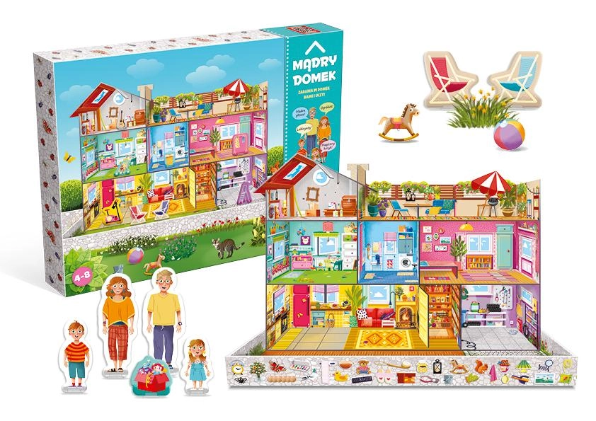 Il gioco educativo Granna Casetta 3D unisce costruzione creativa e una vasta gamma di attività. I bambini assemblano una casetta tridimensionale, vi collocano 27 pezzi di arredamento e, giocando, sviluppano vocabolario, logica e motricità fine. Le attività sono progettate per essere divertenti, comprensibili e motivanti per bambini dai 4 agli 8 anni.