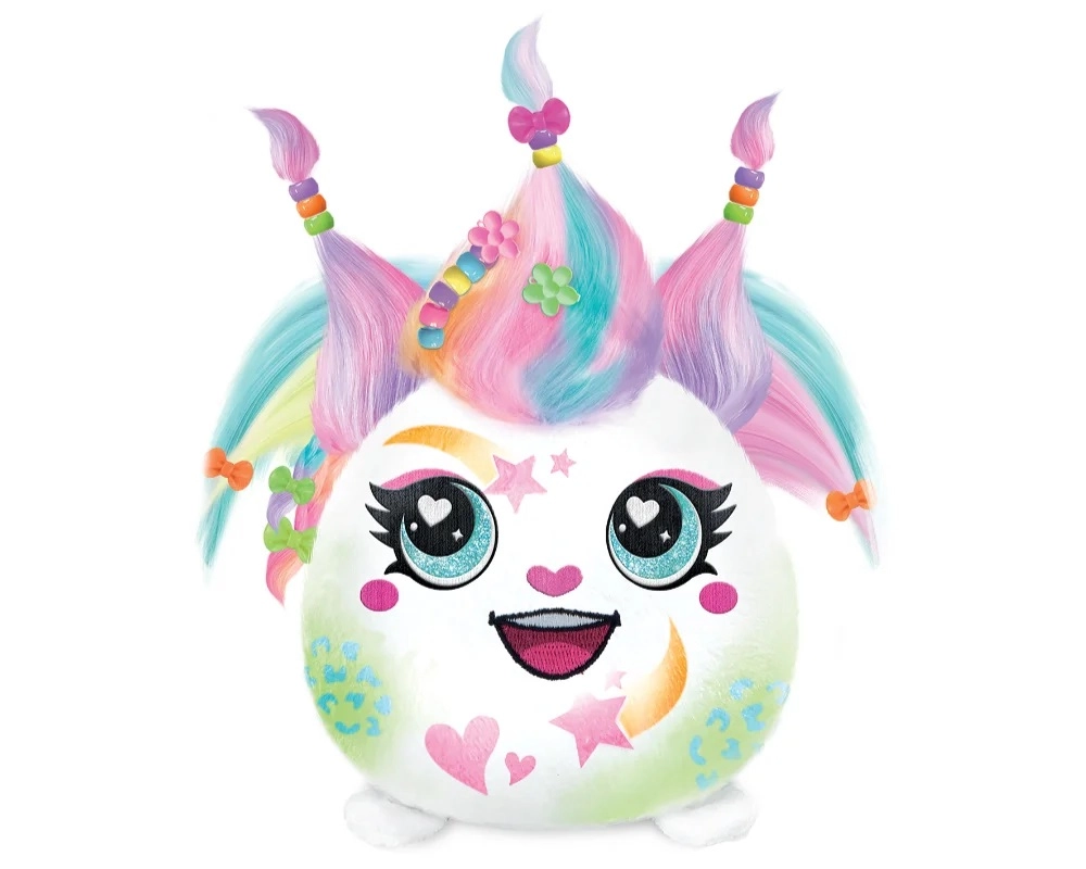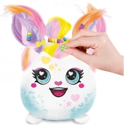 Mollette, elastici, perline e pettinino aiutano a creare trecce, onde e dettagli decorativi. Lo styling è divertente e il morbido peluche invita alle coccole.