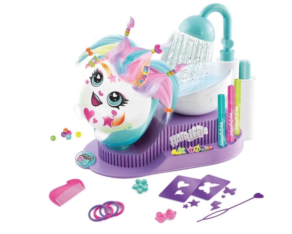 È inclusa anche una ricca selezione di accessori per capelli, grazie ai quali i bambini possono realizzare le acconciature più diverse, dalle treccine alle mollette decorative. Questo giocattolo interattivo stimola fantasia, concentrazione e manualità, ed è un regalo perfetto per piccoli creativi.