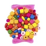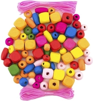 Questo set contiene diversi tipi e forme di perline in colori vivaci. I bambini possono infilare le perline sugli elastici e creare braccialetti e collane uniche e allungabili.