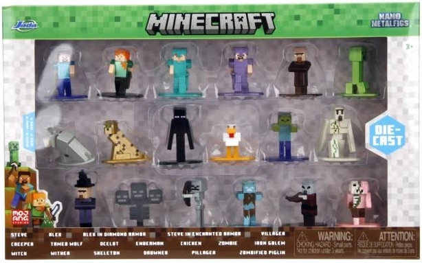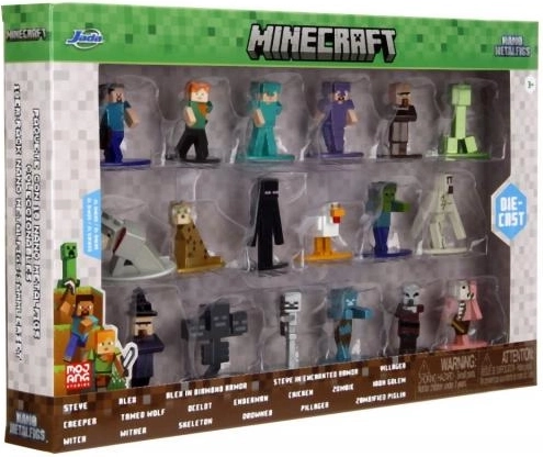Le figure sono realizzate in metallo per una maggiore resistenza e una sensazione premium al tatto. Il design a pixel riproduce fedelmente lo stile del gioco e le varianti di colore donano varietà alla tua collezione. Il set da 18 pezzi rappresenta un’ottima base per iniziare o ampliare rapidamente la collezione.