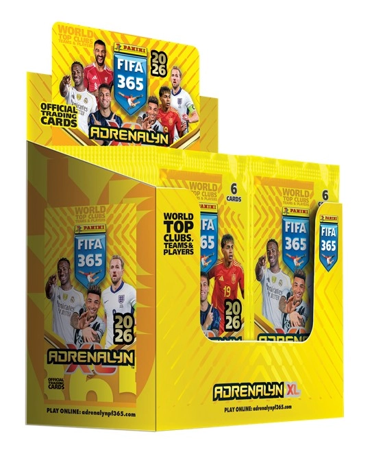Scopri l’undicesima edizione della leggendaria collezione PANINI FIFA 365 ADRENALYN XL 2026! Ogni bustina contiene 6 carte casuali con le stelle del calcio mondiale. Aspettati oltre 450 carte, nuove versioni parallel, autografi autentici e carte speciali Road to FIFA World Cup 26™.