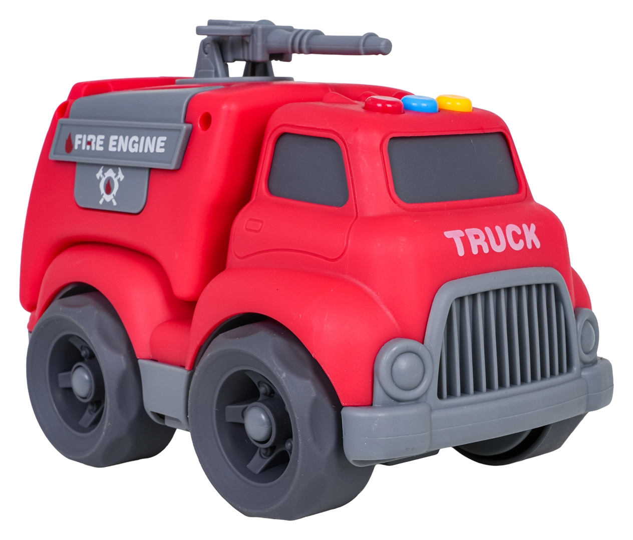 Divertente camion dei pompieri per i più piccoli dai 18 mesi con effetti luminosi e sonori, forme arrotondate sicure e struttura resistente in colori vivaci. Sul tetto trovi pulsanti che avviano suoni di avviamento, guida e retromarcia e una allegra melodia, mentre le lucine lampeggiano. Include una lancia antincendio estraibile e un portellino posteriore apribile per ancora più scenari di gioco. Batterie incluse nella confezione.