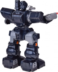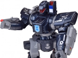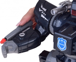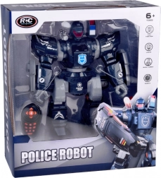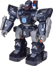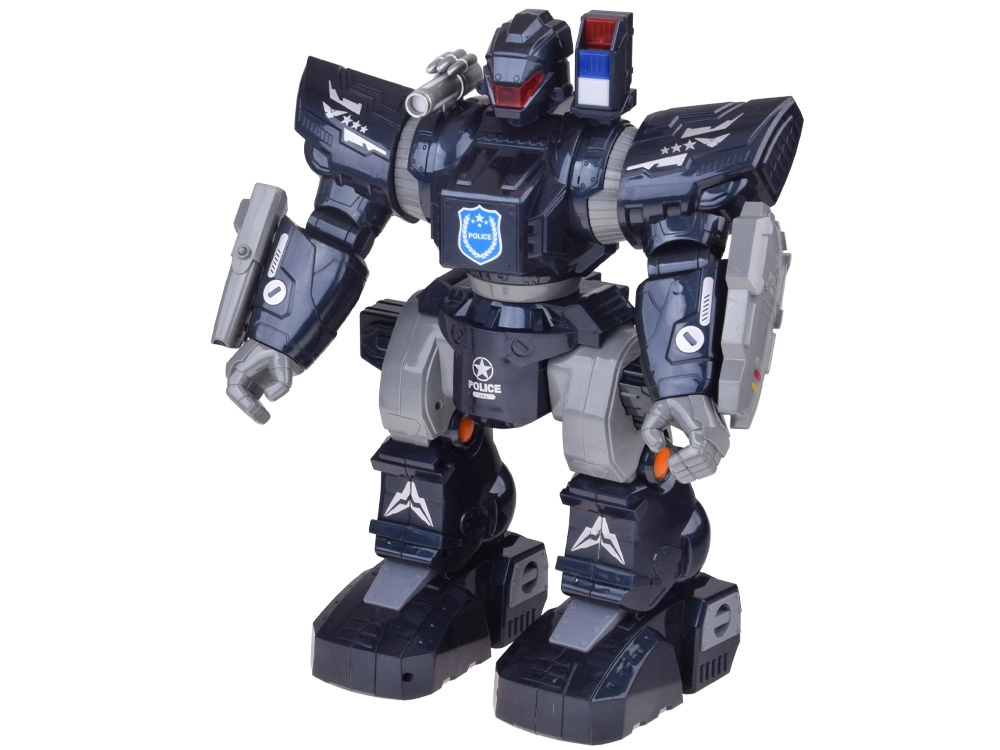 Mettete in servizio un guardiano dell’ordine futuristico. Il robot RC della polizia in colore blu scuro–grigio con emblemi POLICE colpisce per la costruzione robusta, le braccia mobili e l’equipaggiamento sulle spalle. Il controllo è intuitivo grazie al telecomando chiaro: il robot si muove avanti/indietro, ruota e balla con luci e musica.