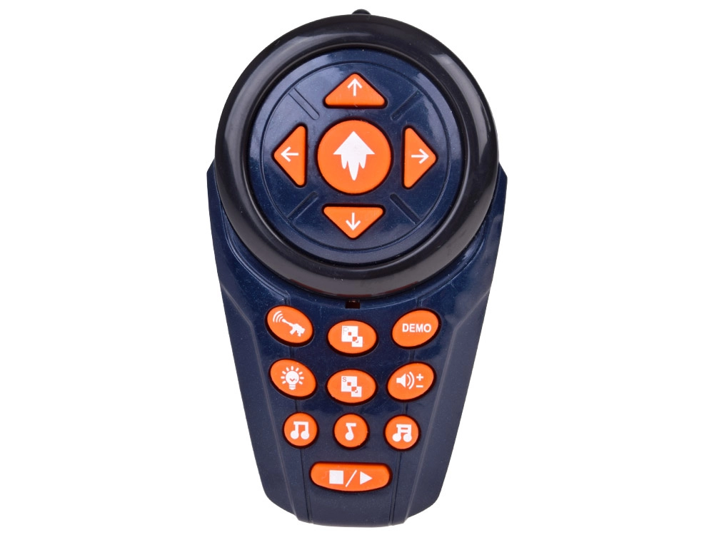 - Movimento avanti/indietro, rotazione, danza con melodie, effetti luminosi e sonori, faro sulla spalla, tiro con dardi morbidi, modalità demo, regolazione del volume