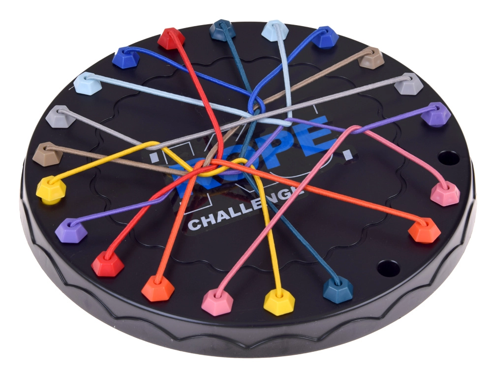 Scopri un allenamento mentale divertente con la tavola circolare, piolini colorati e cordini elastici. Collegando i punti i giocatori creano intrecci e poi cercano la giusta sequenza di mosse per allentare e districare completamente le corde. Il gioco offre più livelli di difficoltà: da modelli semplici per principianti fino a sfide complesse per esperti.
