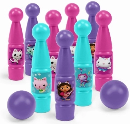 Scopri la magia del gioco con i birilli ispirati al mondo di GABI CASA DEI GATTI. I bambini si divertiranno con una gara dinamica e leale, allenando precisione di lancio e spirito di squadra. Il set è leggero, resistente e, grazie ai materiali sicuri, ideale per le mani dei più piccoli.