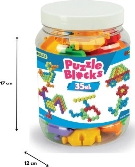 Questo set di costruzioni puzzle universale è l’ideale primo passo nel mondo della creazione. I pezzi dai colori vivaci, grazie al sistema di collegamento intelligente, si incastrano con facilità così che i bambini possano costruire rapidamente creazioni originali, animali, veicoli, numeri, lettere e figure geometriche. Si può giocare in piano e in altezza, sviluppando al meglio la percezione spaziale.