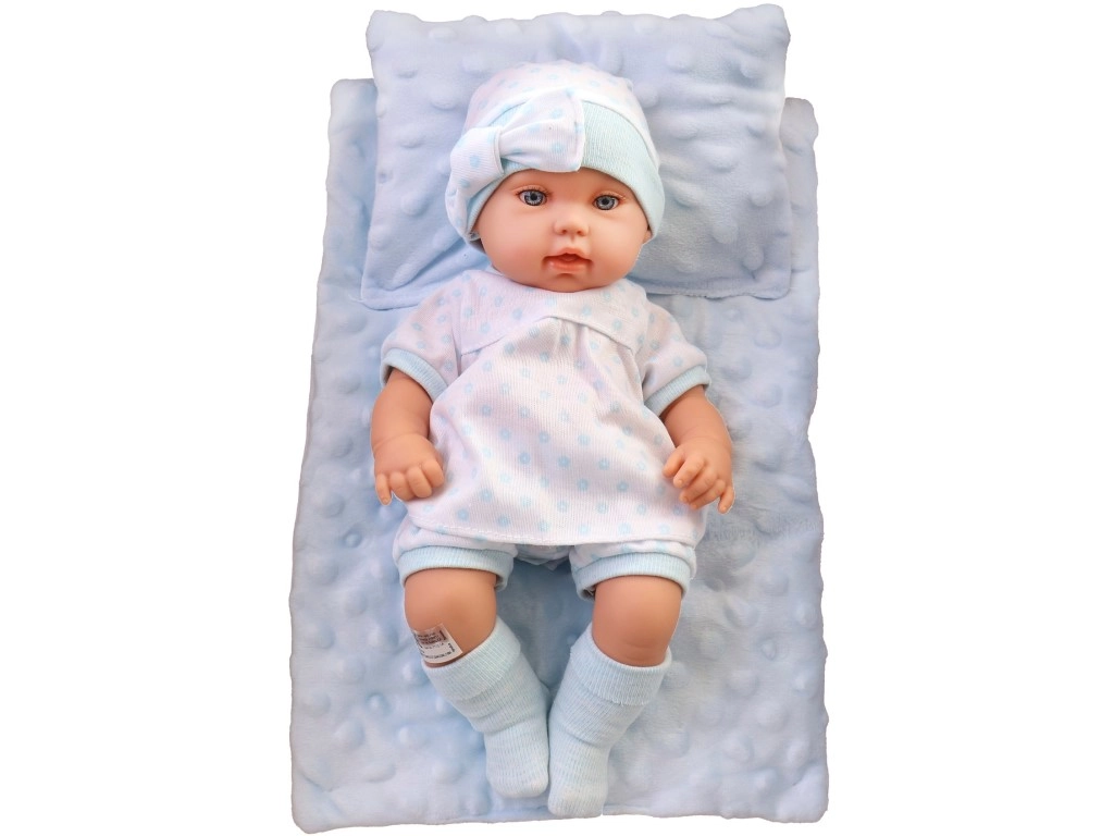 Una dolce bambola da 33 cm farà felice ogni piccola mamma. Realizzata in plastica di qualità e fornita in una pratica scatola con finestrina. Leggera, resistente e facile da impugnare, ideale per il gioco quotidiano senza bisogno di batterie.