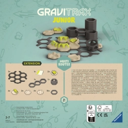 Amplia la tua pista GraviTrax Junior con incroci e percorsi ramificati, che offrono più possibilità di costruzione e divertimento. Questa espansione per bambini dai 3 anni propone costruzioni creative, percorsi intricati e materiali sostenibili in bioplastica di legno. La confezione include 35 elementi costruttivi e decorativi per nuove avventure.