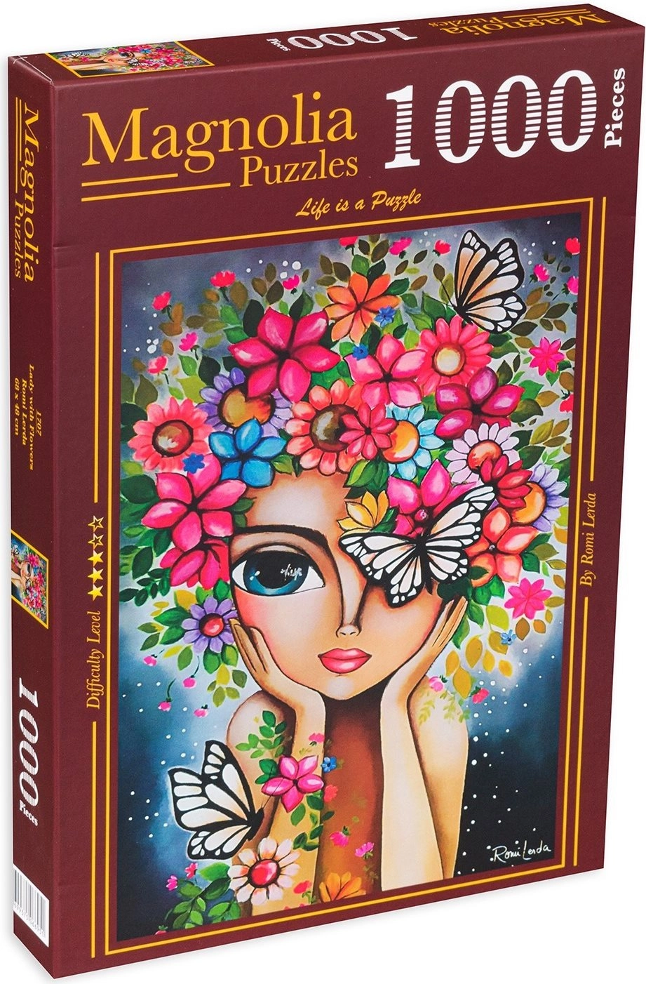 Scopri la bellezza del motivo dettagliato della ragazza con fiori su un puzzle di 1000 pezzi. I pezzi tagliati con precisione si incastrano perfettamente e offrono un piacevole e rilassante esperienza di composizione. Una volta terminato, otterrai un’immagine di 48 × 68 cm, adatta a essere incorniciata.