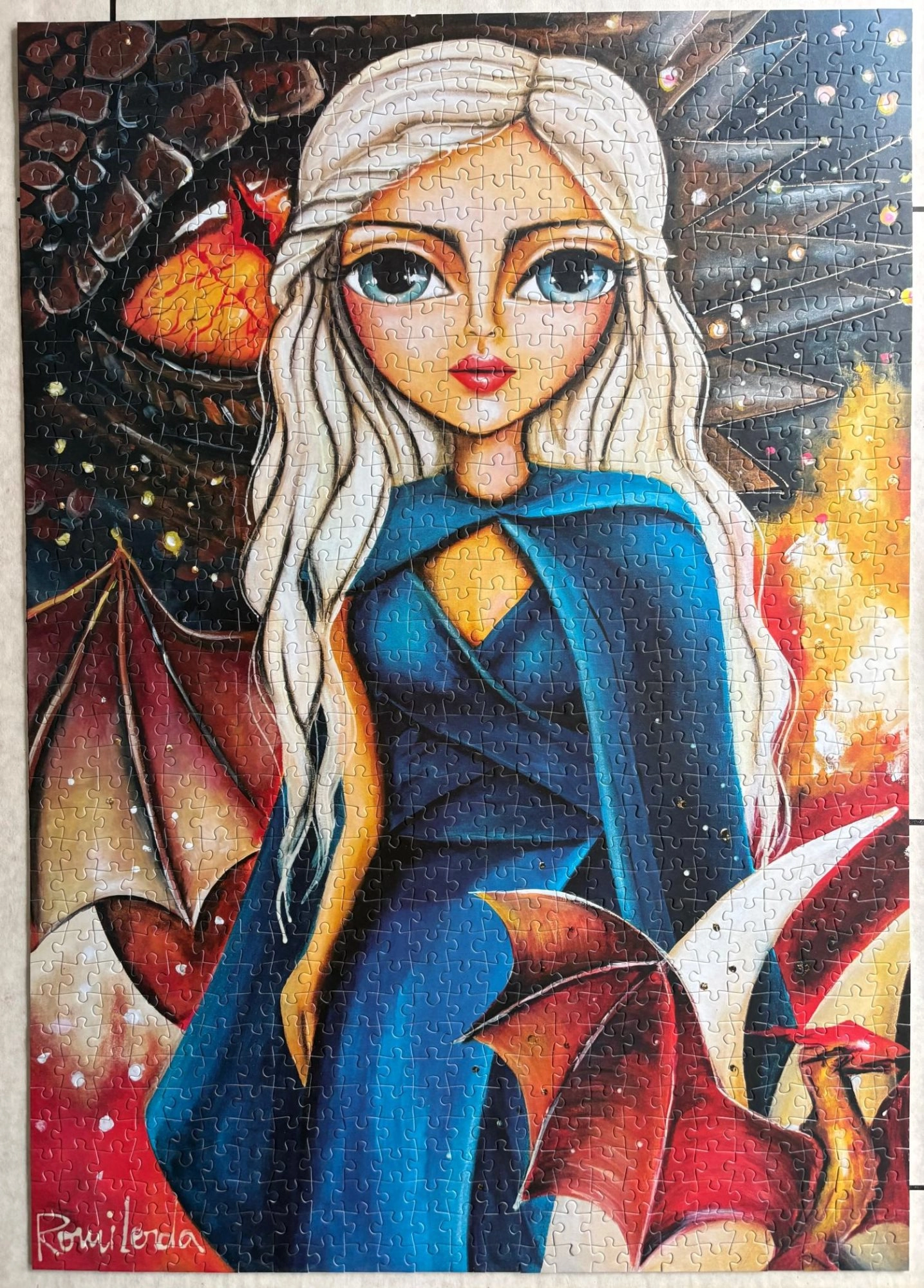 Scopri la magia del puzzle “Madre dei Draghi” da 1000 pezzi. La lavorazione accurata garantisce incastri solidi e un’eccellente leggibilità dei dettagli. L’immagine completata, di circa 48 × 68 cm, è perfetta da incorniciare e abbellirà qualsiasi ambiente.