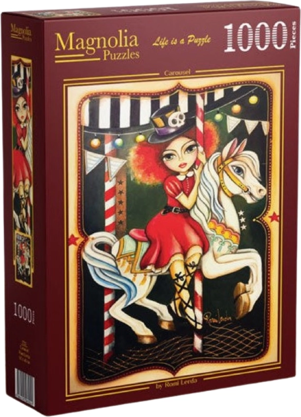 Goditi relax e divertimento con un puzzle di qualità con motivo della giostra del brand MAGNOLIA. Il set contiene 1000 pezzi e, una volta completato, misura circa 48 × 68 cm. Ideale per gli amanti dei motivi dettagliati, per sviluppare la pazienza e rilassarsi con un’attività creativa.