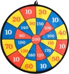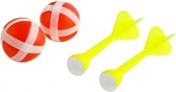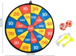 Classica tavola per freccette – con palline e freccette in velcro. È un giocattolo ideale che allena la precisione e la coordinazione occhio‑mano. La distanza dal bersaglio può essere aumentata gradualmente, il che incrementa la difficoltà del gioco. Il bersaglio ha una superficie rivestita in tessuto fibroso a cui aderiscono bene le palline dotate di strisce con piccoli ganci. Questo gioco con freccette in velcro è un grande divertimento per piccoli e grandi.