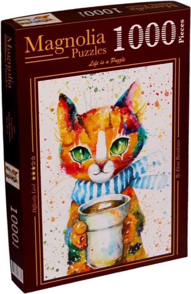 Un puzzle stiloso con un motivo di gatto colorato e vivace che farà felici tutti gli amanti dei puzzle. Grazie alla stampa di qualità e ai tagli precisi, l’assemblaggio è fluido e divertente. Una volta finito, otterrai un quadro decorativo, perfetto come regalo o come originale complemento per la casa.