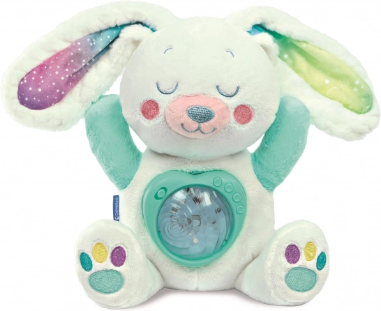 Il dolce coniglietto di peluche con proiettore integrato offre un'aurora boreale rilassante in 10 colori e rumori bianchi e melodie delicate per facilitare l'addormentamento. Grazie al volume regolabile e al cambio del colore della luce, puoi adattare l'atmosfera alle esigenze del bebè. Il proiettore può essere rimosso, così il bambino può coccolarsi in sicurezza con il morbido pupazzo.