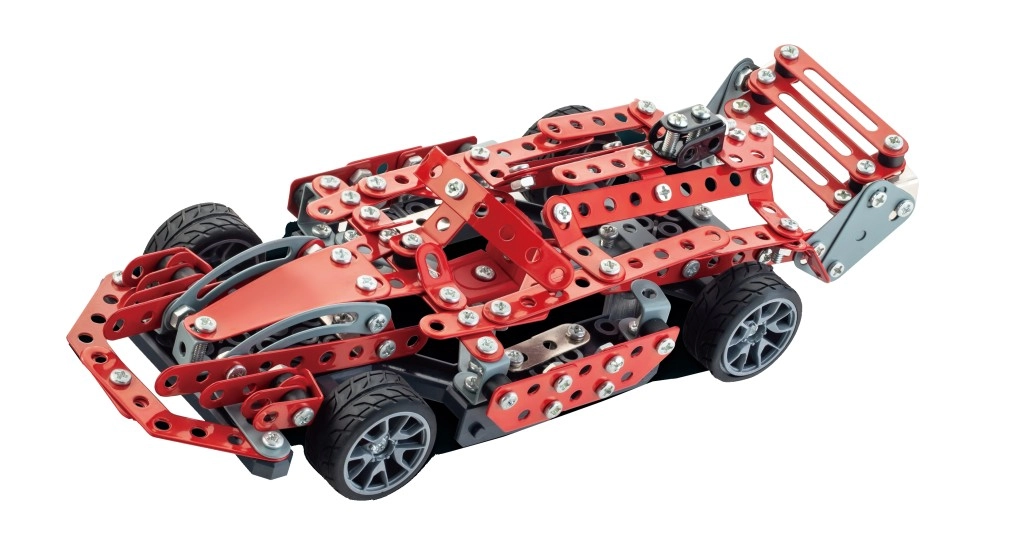 Costruisci la tua auto da corsa in metallo! Questo kit di costruzione in metallo della formula con 287 pezzi combina componenti metallici resistenti e accessori in plastica, che si uniscono con viti e dadi. Offre montaggio divertente e allo stesso tempo impegnativo, sviluppa pazienza, manualità e pensiero tecnico – una scelta perfetta per piccoli e grandi costruttori.