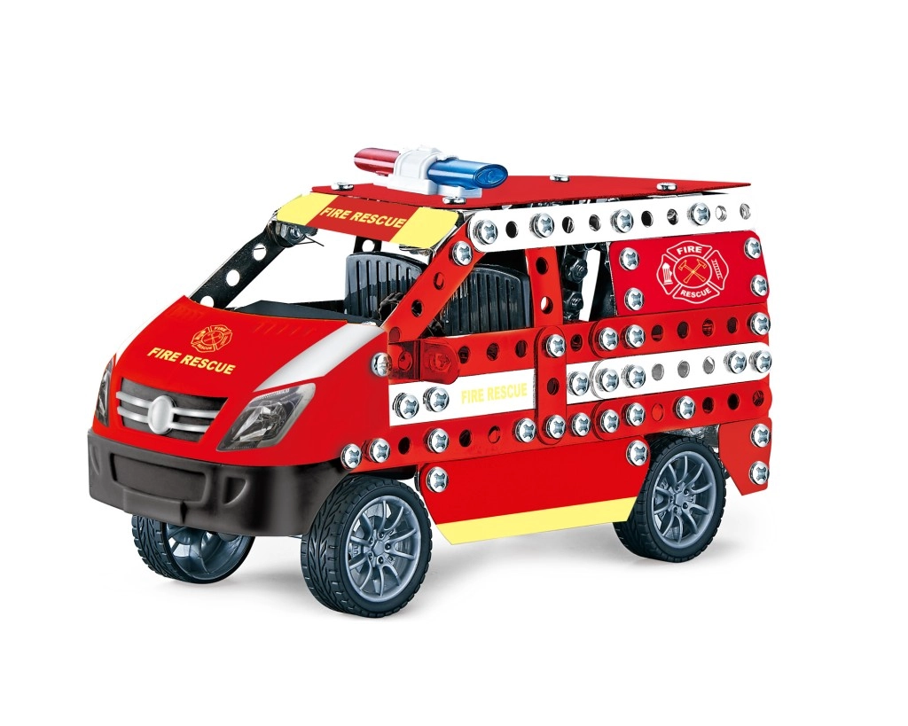 Assembla il tuo modello di veicolo antincendio con un robusto set da 314 pezzi. La combinazione di parti in metallo e accessori in plastica si unisce tramite viti e dadi, garantendo una struttura solida, lunga durata e al tempo stesso un montaggio divertente ma impegnativo.