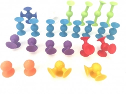 Il set di gioco con ventose in silicone offre ai bambini infinite possibilità di costruire, assemblare e creare. Grazie alle ventose, i singoli pezzi aderiscono saldamente quasi ovunque – su finestre, tavoli, in vasca o sui tavolini da viaggio – e si staccano facilmente senza lasciare tracce.
