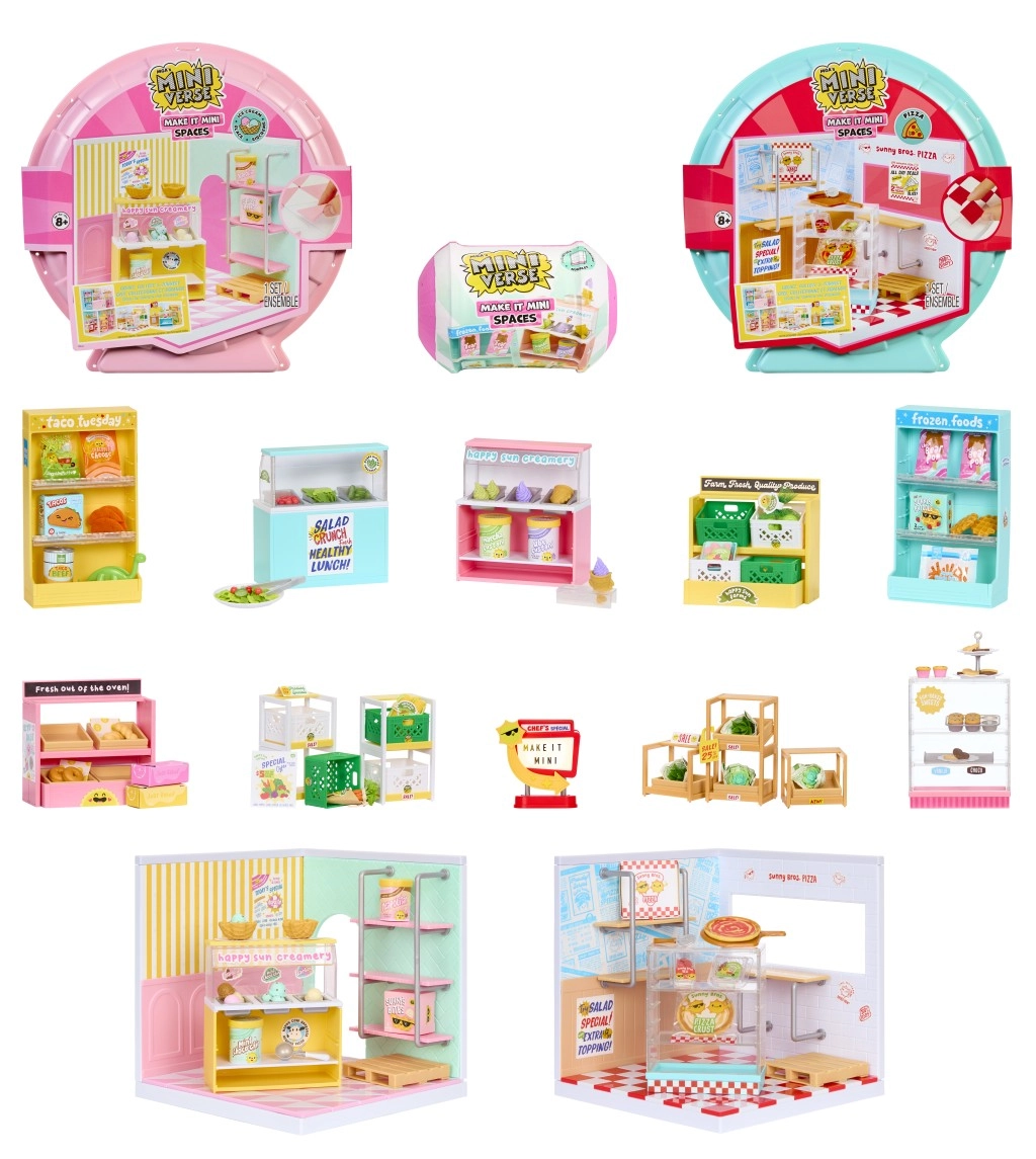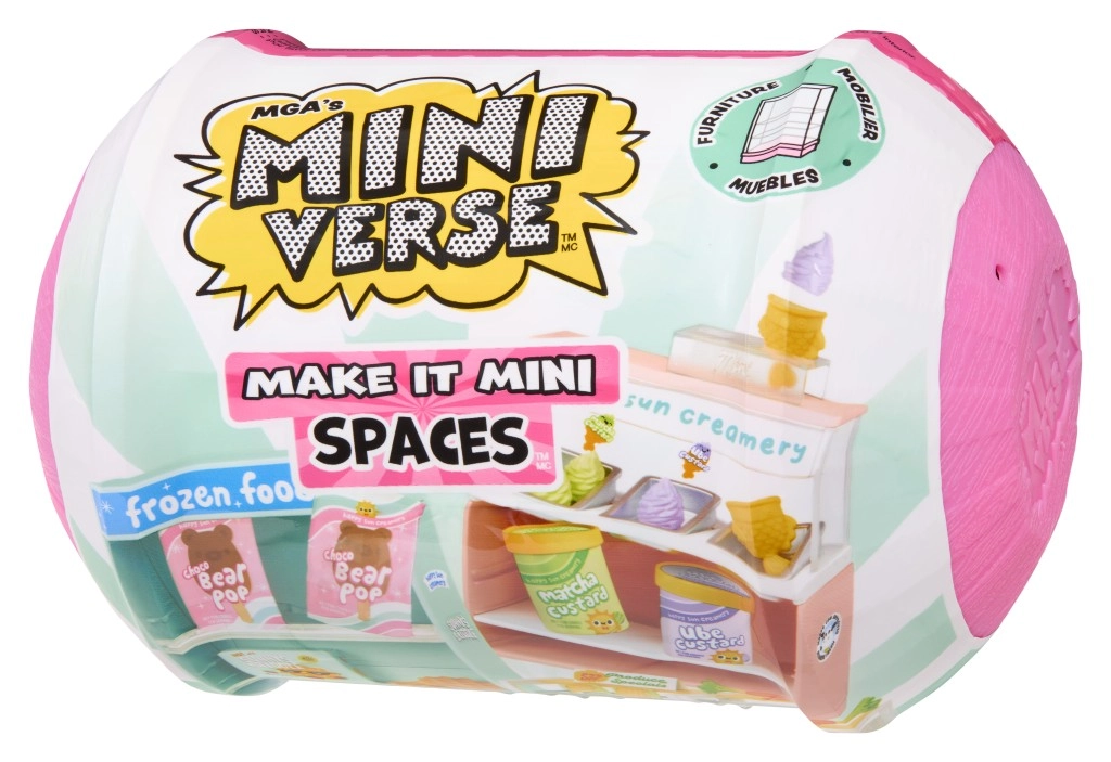 Scopri il mondo in miniatura con la collezione MGA’s Mini Verse Make It Mini Spaces – capsule piene di sorprese che ti aiutano a creare ed esporre le tue scenette in miniatura. In ogni confezione troverai diversi pezzi di arredamento e accessori per spazi a tema, come gelateria, panetteria, salad bar o vetrina frigorifera. Grazie a scaffali modulari, espositori impilabili e accessori dettagliati potrai creare facilmente originali mini-angoli per giocare ed esporre.